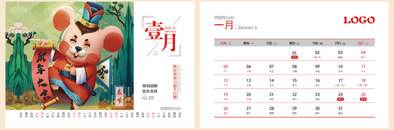 2020年鼠年臺歷設計案例欣賞 紅色系 鼠年大吉